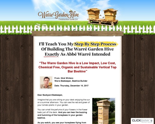 Build Your Own Warre Garden Backyard Top Bar Beehive! This Hot Product Shows How With Audio, Video And PDF Manual. Build Your First Beehive This Beekeeping Season! Affiliate Page At Http://diybeehive.com/affiliates – $27 – Affiliates 60 Percent